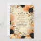 Set die Stimmung für einen strahlend eleganten Abend mit diesem rustikalen schwarzen Dahlia Halloween-Party Einladung. Dieses Design mit dramatischen dunklen Blumen, weichen Sahne-Kürbissen und goldenen himmlischen Akzenten verbindet gotische Romantik mit saisonalem Charme. Ideal, um ein stilvolles Halloween-Fest mit einer Touch von Rätsel und Raffinesse zu veranstalten.