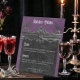 Transport your guests to a world of dark, enchanting elegance with our vintage gothic wedding signature drinks bar pedestal sign. The deep, aged purple background sets the stage for a striking contrast, as bold white text emerges from intricate black text boxes. Three-dimensional gothic elements adorn the design, capturing the essence of mystery and romance. Unleash the magic and set the tone for an unforgettable wedding day. Created by Simply Farmhouse Press.