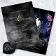 Gothic Black Smoke Friedhof Einladung Hochzeit. Ein vollständig anpassbares minimalistisches typografisches Design. Die Farbe und der Typ des Schriftartes können über das Menü Bearbeiten geändert werden. Sie können auch Text- und Hintergrundfarben auf beiden Seiten ändern, wenn Sie möchten. Fügen Sie Ihren QR-Code zu Ihrer Hochzeitswebsite auf der Rückseite als bequeme Option für Ihre Gäste zur UAWG. Ändern Sie einfach die Beispielurl in Ihre eigene Url, und Ihr Code wird automatisch generiert.