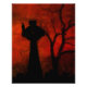 Auf einem keltischen Kreuz in einer dunkelroten Nacht würfeln. Dieses vertikale Foto einer Krähe auf einem Kreuz in rot und schwarz wäre eine sehr schöne Ergänzung zu einem gotischen Themenzimmer oder Haus.