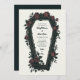 Diese dunkel schöne, särmelige Hochzeitseinladung ist perfekt für eine gotische oder Halloween Hochzeit. Sarg hat Rose an den Rändern. Die handgeschriebene Kalligraphie-Typografie verleiht dem Bild einen besonderen Touch. Sehen Sie die Koordination der Artikel in unserem Shop, Verzauberte Finch.