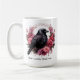 Set the tone for a moody dark academia morning with this personalized coffee mug. This artistic design features a striking black raven illustration nestled within vintage pink roses rendered in a deep mauve and charcoal palette. It is a thoughtful way to celebrate a special occasion or a unique gift for a best friend.