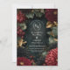Ein dramatisches und elegantes Hochzeitsdesign mit tiefbordeauxroten Dahlien, goldenen Blätter und einem üppigen Herbstblättern vor einem schwarzen Hintergrund. Ideal für Paare, die eine stimmungsvolle, romantische und luxuriöse Atmosphäre für ihre Herbst- oder Winterhochzeit suchen