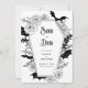 Mit dieser gotischen Hochzeit verzaubern Sie die verzauberte Zeit und sparen Sie die Einladung für ein Halloween-Hochzeitsfest. Dieses moderne, elegante Design verbindet eine boho-dunkle Ästhetik mit einer launenhaften, spoky Atmosphäre, die das Wesen einer Oktoberfeier abbildet. Diese Einladung ist mit Fledermausmotiven und Spinnennetzmotiven sowie zarten Blumenelementen gestaltet und präsentiert eine beeindruckende Schwarz-Weiß-Farbpalette. Stellen Sie den Ton für Ihren besonderen Tag mit einer einzigartigen Mischung aus gespenstischer Schönheit und zeitloser Eleganz.
