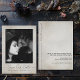 Verkünden Sie Ihre ewige Liebe mit unserer faszinierenden Touch von Goth Save the Date Karte, mit einem zeitlosen Not leidenden Hintergrund und der Möglichkeit, ein Foto des Paares zu sein. Personalisieren Sie diese Karte mit Ihren Namen und Hochzeitsdatum auf der Vorderseite. Auf der anderen Seite, passen Sie alle Details für Ihre kommende Hochzeit mit einem Hinweis, dass eine Einladung folgen wird, gekappt mit der romantischen Touch von "bis zum Tod tun wir Teil". Set den Ton für Ihre Hochzeitsfeier und sorgen dafür, dass die Gäste den Termin für Ihren besonderen Tag halten. Sehen Sie sich diese Designsuite für alle Ihre Hochzeitswünsche an.