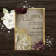 Diese zauberhafte und stimmungsvolle Einladung hat ein gotisches, Vintages Märchenthema. Im Hintergrund befindet sich ein verblasstes Pergamentpapier-Design, das einem alten Geschichtenbuch ähnelt. Eine Märchenburg ist im unteren verlassen mit goldenen Glitzer-Akzenten bedruckt. Ein Goldrahmen grenzt an die Einladung. Der klassische Einmal-auf-Zeit-Satz wird oben in einem skurrilen Schriftart gedruckt. Gotischer Stil, lila Blumenbouquets sind in den gegenüberliegenden Ecken gedruckt.