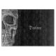 Gotische Macabre coole Grunge Textur schwarz-weiß bedruckt Halbkopf rechteckige Glas Schneidebrett. Spooky, gruselig, böse, finstere Küchenartikel. Maßgeschneiderte, trendige, einzigartige, moderne, beängstigende Halloween-Wohngestaltung. Passen Sie Ihren Namen an. Bildrecht Marg Seregelyi Fotografie.