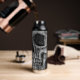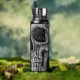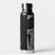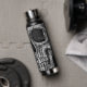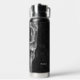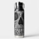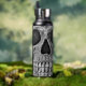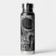 Cool gotische makabre schwarz-weiße Grunge Textur bedruckt halben Schädelkopf. Creepisch, böse, spöttisch, finster Edelstahl 25 Unze Wasserflasche. Individuelle Typografie. Trendy Trinkbehälter. Einzigartiges, modernes, beängstigendes Halloween-Design. Bildrecht Marg Seregelyi Fotografie.