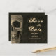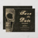 Gothic Halskull Vintage sepia Budget Save the Date flache Einladung. Vergnügen, lustig Halloween bis zum Tod Do Us Teil Skript auf Textur-Druck-Hintergrund auf der Rückseite. Bildrecht Marg Seregelyi Fotografie.