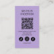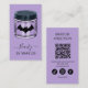 Mit dieser kleinen Visitenkarte zum Halloween-Thema präsentieren Sie Ihrer Hautpflegemarke eine Touch gotischen Charmes. Sie ist in einem eleganten Glas-Design mit einem kühnen schwarzen Fledermausemblem gestaltet. Dieses Design verbindet Minimalismus und Rätsel perfekt und eignet sich somit ideal für Skinavier, Schönheitsunternehmer oder Kosmetikmarken, die sich durch ihre herausragende Qualität auszeichnen. Der Lavendel und die schwarze Farbpalette sorgen für mehr Eleganz, während das geräumige Layout sich ideal eignet, um einen scannbaren QR-Code einzubinden, der Kunden direkt zu Ihrer Website, sozialen Medien oder Buchungsseite führt. Diese Karte ist nicht nur ein Mittel zum Austausch von Kontaktdaten, sondern eine berufliche und stilvolle Erweiterung Ihrer Marke. Ob Sie sich auf handgemachte Pflege, Bio Kosmetikprodukte oder Wellness spezialisiert haben, dieses Design spiegelt die sprichwörtliche Eleganz von Halloween wider. Personalisieren Sie die Karte mit Ihrem Firmennamen, Logo und QR-Code für eine interaktive und moderne Touch. Ideal für saisonale Kampagnen oder ganzjährig Branding mit kühlem ästhetischem Geschmack!