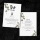 Ein gotisches Halloween-Drehbuch Hochzeitsdesign mit schwarzen Blumenweinen, Schädeln und Herz. Ein weißes Halloween-Design, das schwarze und dunkle botanische Vegetation mit Vintager Schriftzeichen-Kalligraphie-Typografie verwendet. Ein stilvoller Skulls Gotisches Design ideal für Halloween Hochzeitsthemen. Ein einzigartiges schwarzes botanisches Programm, Skulls und Herz Hochzeit Programm-Design. Auch die passenden Hochzeitseinladungen und andere Schreibwaren sind verfügbar.