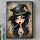 Fügen Sie Ihrem Halloween-Werk eine Touch unheimlicher Raffinesse hinzu, mit diesem gotischen Hexenentcoupapier. Das Design zeigt eine bezaubernde Abbildung einer stilvollen Hexe, die eine Zigarre genießt, umgeben von Vintag inspirierten Elementen.