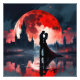 In der ätherischen Dämmerung einer Welt, in der Nacht und Dunkelheit miteinander verschmelzen, teilt ein Vampirpaar einen leidenschaftlichen und zeitlosen Kuss unter dem faszinierenden Blick eines blutroten Mondes. Ihre Liebe, die durch Jahrhunderte gemeinsamer Unsterblichkeit geschmiedet wurde, entzündet die Nacht mit einer heftigen, aber zarten Sehnsucht.