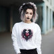 Gothic Raven Couple Sweatshirt. © Dunkles Herz Wünsche. Dieser gotische Valentinschweiß hat ein Raven Paar mit Schädeln, Rose und Spinnen.