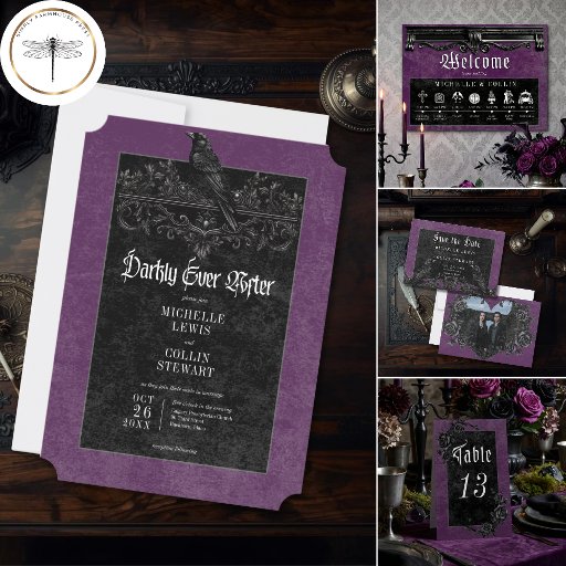 Gothic Raven Purple Darkly Ever After Wedding Einladung