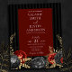 Gotische Rot- und Schwarz-Flora-Hochzeitseinladungen. Imitate golden florale Blätter. Skript-Schriftart-Highlights mit leicht lesbaren Serifennamen Schriftart. Leicht an Ihre Hochzeitsbedürfnisse anzupassen. Alles in einer Einladung