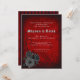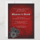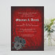 Glamouröses und dekadentes gotisches Design mit einem tiefroten Hintergrund, der mit einer schönen Anordnung von schwarzen Rose und skurrilen Ornamenten dekoriert ist, um die Einladung zu bilden. Ein dunkles Nebel-Overlay verschlingt die Zeremonien Details. Viktorianische Kalligraphie in weiß schafft einen auffallenden Kontrast. Die Hinterseite der Einladung wird durch einen bedrückten schwarzen Streifen mit einem tiefen, reich strukturierten Hintergrund geschmückt.