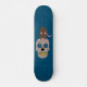Dieses phantastische Skateboard verfügt über einen grauen, grauen Schädel mit leuchtend blauen Augen und faulenden gelben Zähnen. Auf dem Schädel ist eine braune Ratte mit rosa Ohren, Schwanz, Pfoten und Nase und blauen Augen, die Ratte hat einen gewölbten Rücken bereit, um Sie auszuspringen. Ein tolles Design für Ratten-Liebhaber und zu Halloween.