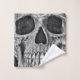 Skull Gesicht nah Gothic Schwarz-Weiß-Grunge kreative Textur Bad Handtuch Set. Einzigartige, coole, trendige, moderne, beängstigende Vintage Badezimmer-Dekoration. Bildrecht Marg Seregelyi Fotografie.