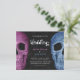 Gotischer Schädel Kopf Vintag rosa, blau, schwarz Halloween Hochzeitsbudget flache Einladung. Spaß, spuke Hallowedding. Bis zum Tod tun uns Teil Skript auf Textur drucken. Bildrecht Marg Seregelyi Fotografie.