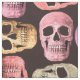 Gothic Schädel bunt rosa orange gelb grünes schwarzes Muster. Cooles Handnähmaterial. Moderne Pop-Kunstkultur. Trendy, psychedelische abstrakte Halloween Design-Stoff. Bildrecht Marg Seregelyi Fotografie.