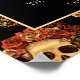 Dieses gotische Hochzeitsposter empfängt Ihre Gäste mit einem Muster gruseliger Schädel, die in einem schwarzen Abgrund hinter Ihrem Monogramm-Text schwimmen. Jeder Schädel ist zu Halloween mit rote Rosen geschmückt. Ihre leeren seelenlosen Augen werden scharf gegen die Krone der gotischen Rose und den Strauß toter Blume kontrastiert. Eine lustige und morbide Drehung über die Ehe.