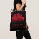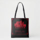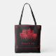 This gothic wedding tote bag features a haunting vintage illustration of a castle, which you can replace with an image of the destination where you'll be married (transparent background preferred). Calligraphic blackletter fonts display the location and date of the wedding, as well as the names of the couple. A hand-drawn border encloses the design. The color scheme is blood-red on black. ••• For more wedding suites, visit my store Zazzle.com/EventsByJessicaAmber ••• For custom orders, message me on Zazzle