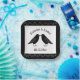 Dieses phantastische Set von quadratischen Hochzeitspapier-Party-Tellern zeigt ein digitales Kunstbild eines Paares von schönen schwarzen Raben, die sich gegenüberstehen und so aussehen, als würden sie sich küssen. Sie sind schwarz mit beatenen Augen und grauen Schnallen und Füßen. Weiße Sterne auf schwarzem Hintergrund über und unter den Vögeln. Es gibt einen eigenen Text, damit Sie die Namen des glücklichen Paares und das Hochzeitstag angeben können.