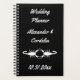 Dieser phantastische Hochzeitsplaner zeigt ein digitales Kunstbild eines Paars wunderschöner weißer Skorpione, die sich gegenüberstehen. Jeder Skorpion ist weiß und hat acht Beine, einen giftigen Stachel und ein Paar Pincers. Die Brustbänder werden zusammengehalten, um die Form eines Herzens zu bilden. Der Hintergrund ist schwarz. Ein schönes gotisches Hochzeitsdesign. Es gibt einen eigenen Text, damit Sie die Namen des glücklichen Paares und das Hochzeitstag angeben können.