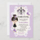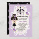 Les invitations à la douche nuptiale violette, lavande et gothique noire sont parfaites pour une soirée nuptiale à thème Halloween ou une soirée bachelorette. Vos invités seront ravis de recevoir ces super mignons invitations wedding showers à thème gothique avec un élégant lustre noir et violet et fille gothique mignonne avec rouge à lèvres noir et l'ombre de lavande portant une bague fiançailles améthyste dans une robe mariage gothique avec un top corset violet. Roses et fleuris ajoutent une jolie touche gothique à l'oeuvre. Un motif à fleurs à l'arrière. Oeuvre © Chrissy H. Studios, LLC. Tous droits réservés.
