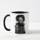 Bild auf mug mit einer gotischen und faszinierenden Atmosphäre mit dieser spannenden Darstellung einer Puppe in einem rätselhaften Blick. Sein dunkler Verlauf und sein Teddybär kontrastieren zwischen Unschuld und Mysterium und schaffen eine einzigartige und faszinierende Atmosphäre. Perfekt für Liebhaber der Gotik, der Originaldekoration und atypischer Sammlungen. Dieses Bild bringt einen Stachel dunkler Eleganz in Ihr Universum.