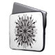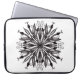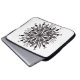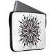 Gotische Mandala Laptop-Hülle mit Blätter und Schlangen digital gezeichnet in Schwarz-Weiß, Stipple schattiert.