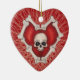 Diese Keramik hängt Ornament ist rot mit einer Spirallinie-Design und ein gotisches rotes Herz mit weißen Knochen und einem Schädel in der Mitte. Die Rückseite ist schlicht rot. Passen Sie Ihren Text auf der Rückseite mit der Vorlage an.