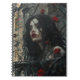 Gotische Frau auf Burg Balcony Notebook. © Dunkles Herz Wünsche. Eine gotische Frau ist auf einem Schlossbalkon zwischen Rose und Dornen auf dem Cover dieses Notizbuches stehend.