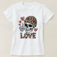 Die Liebe got mit diesem gotisch inspiriert Design, das einen Schädel mit Herzsymbolen und das Wort "LIEBE" in fett gedruckten Buchstaben enthält, viel dunkler.