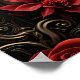 Gotische Romantik: Versteckte Leidenschaft. Ein verzierter Rahmen im gotischen Stil, entworfen mit feinen schwarzen filigranen, mit feinen Linien und aufwändigen Details, die an antike, verzierte Schnitzereien erinnern. Eingebettet in den Rahmen sind helle rote Rosen, deren samtige Blüten einen lebhaften Kontrast zum dunklen Filigree schaffen und die romantische Stimmung unterstreichen. Herzförmige Ornamente schmücken die Ecken und Kanten des Rahmens. Zwei schwarze Kerzen mit roten Flammen leuchten sanft und verleihen dem Gesamtbild eine warme, etwas düstere Touch.