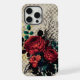 Dunkle Rote Rosen mit überprüftem Musterhintergrund.