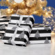 Fügen Sie die perfekte kundenspezifische Touch allen Ihren Feiertagsgeschenken mit diesem gotischen Striped Verpackungspapier des Weihnachtsbaums hinzu. Die Ausrüstungsbeschreibungen ein Schwarzweiss-Streifenhintergrund und ein Weihnachtsbaum verzierten mit den Schädeln ganz vorbei.