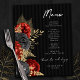 Gotisches Hochzeitsmenü in Rot und Schwarz. Skript-Schriftart-Highlights mit leicht lesbaren Serifennamen Schriftart. Leicht an Ihre Hochzeitsbedürfnisse anzupassen. Machen Sie Ihre eigene Speisekarte, nutzen Sie Ihren eigenen Text, um ein elegantes und dennoch preiswertes Veranstaltungsmenü zu erstellen. Einfach zu personalisieren. Benutzerdefinierte Menüpapierblätter.