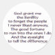 Gott gibt mir den Sinn, die Menschen zu vergessen, die ich ohnehin nie mochte, Das Glück, auf die zu laufen, die ich tue, Und das Sehvermögen, den Unterschied zu sagen. - Parodie des Heiligen Gebets. Das sonnige und humorvolle Sprichwort.