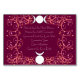 Horned God and Triple Goddess themed Wiccan Hochzeitstisch Karte mit Gästen aufgeführt. Die Dreifach-Göttin und Horned-Gottes-Ikonen greifen mit blumengeschmückten Zweigen im Herzen der Liebe auf einander aus. Ihr miteinander verwobenes Blattwerk ist schließlich ein und dasselbe. Sie repräsentieren die Braut und den Bräutigam. Die rötlichen Farbtöne sind die Farben der Mutter des Drei-in-One. Sie ist diejenige, die wickanische Hochzeiten beaufsichtigt.