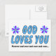 Gott Liebe dich für immer und immer und immer... Dies ist ein schönes Christliches Bild eines großartigen Sprichworts, das mit blauen Buchstaben und schwarzer Kontur geschrieben wurde. Das Design besteht aus zwei blauen und violetten Blumen. Immobiliendesign durch sorgfältiges Herz