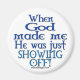 Als Gott mich herstellte, zeigte er sich gerade aus - lustiges religiöses Spaß-Sprichwort.