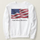 Männerlangärmeliges Sweatshirt mit amerikanischer Flagge vorne. Komfortable und warme Baumwolle. Gott segne Amerika.