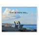 Küste Maine, wie aus der Marginal Way, Ogunquit gesehen. Eine leere Parkbank sitzt am Wasser und die Nachricht lautet: "Gott sei mit dir" an der Außenseite. Im Inneren sind die Worte: "Bis wir uns wieder treffen." Schöne Karte für den Christlichen Freund, der sich eine Zeit lang bewegt oder weggeht.