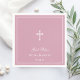 Diese einfachen, aber klassischen Taufcocktail-Servietten wären perfekt für die Person, die Sie Liebe Taufe feiern. Sie haben ein traditionelles weißes Kreuz mit "Gottes Glück" in einem klassischen Drehbuch-Schriftart, den Namen der getauften Person und das Taufdatum ganz in Weiß auf staubiger Rose.