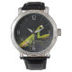 Uhr, Vintage Männeruhr mit schwarzem Lederarmband