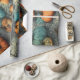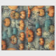 Dieses Design besticht durch eine fesselnde Mischung aus Kürbissen in warmen, orangen und coolen aquamarinen Farbtönen, Set vor einem knackigen, mondbeleuchteten Hintergrund. Die Kürbisse sind in einem Schichtenmuster angeordnet, verwoben mit dunklen, verdrehten Weinreben, die ein Gefühl von Tiefe und Textur schaffen. Einige Kürbisse werden in Jack-o'-Laternen mit glänzenden, schelenden Grinen eingemeißelt, während andere ungeschnitzt bleiben und der Komposition Kontrast und Vielfalt verleihen. Die abgedämpften Hintergrundfarben verstärken die kräftigen Kürbisfarben und verleihen dem Gesamtbild ein etwas unheimliches, aber auch skurriles Ambiente. Dieses Muster würde ein optisch auffallendes Papier oder Gewebepapier herstellen, perfekt für Halloween- oder Herbstgeschenke, um festlichen Spaß mit einer Touch Geheimnis zu verbinden.