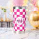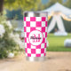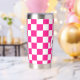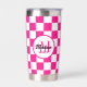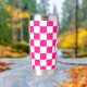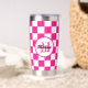à damiers rouge chaud rose blanc rétro Monogram Tumbler Isolé. à damiers bouteille d'eau motif géométrique rétro. Un cadeau pratique pour femme active. Cool retro à damiers motif carré géométrique . Chèque moderne carrelage vintage blanc et rose chaud.