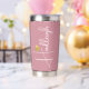 Gourde Isotherme Bridesmaid | Nom de script minimal Gold Heart Pink